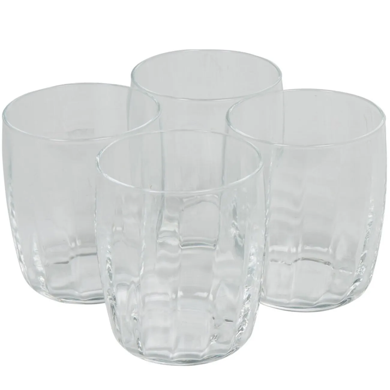 – 4 verres à eau d’une contenance de 30 cl, dimensions ø7,65 x h.8,8 cm.