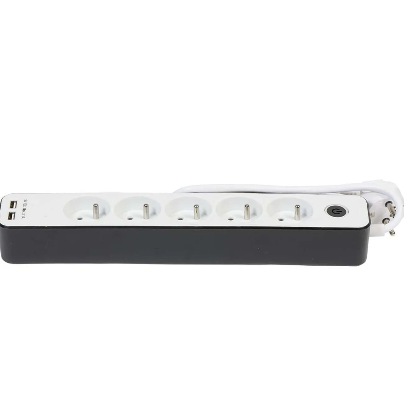 Ce bloc multiprise vous offre 5 prises standards et 2 prises USB 5V/2,1A.