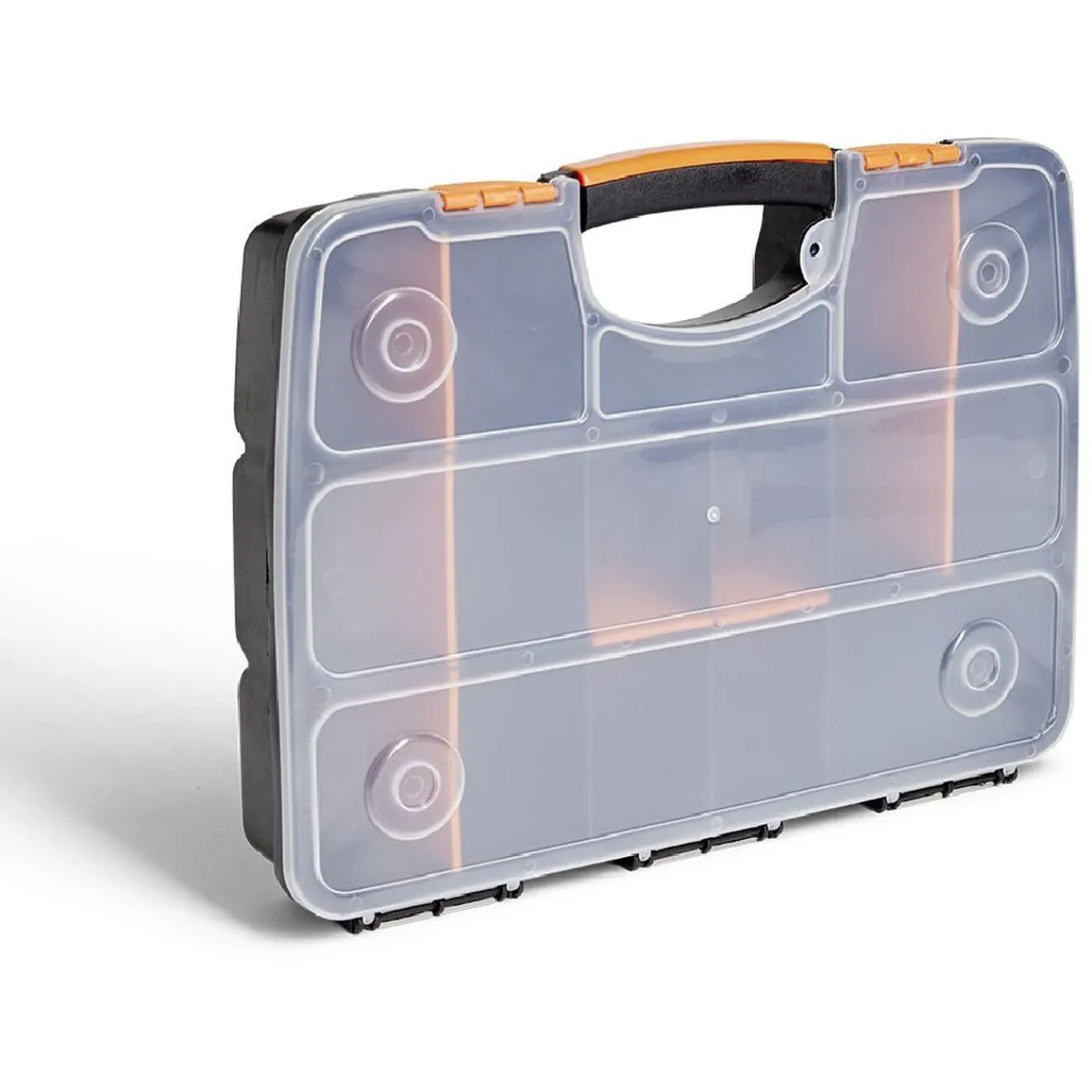 Dotée de multiples compartiments et de séparateurs réglables, cette boîte permet une organisation personnalisée de vos outils, petites pièces et accessoires.