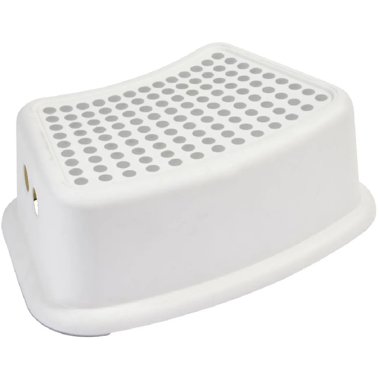 Marche pied blanc avec surface d’appui antidérapante grise.