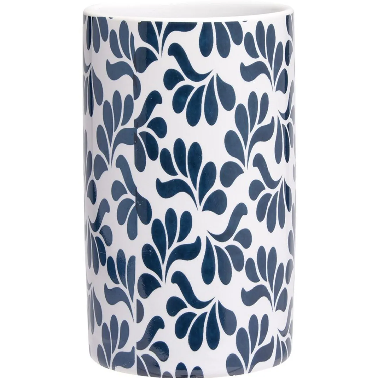 Alliez charme et élégance dans votre salle de bain avec ce gobelet en céramique blanche à motifs motifs bleus sur l’extérieur.