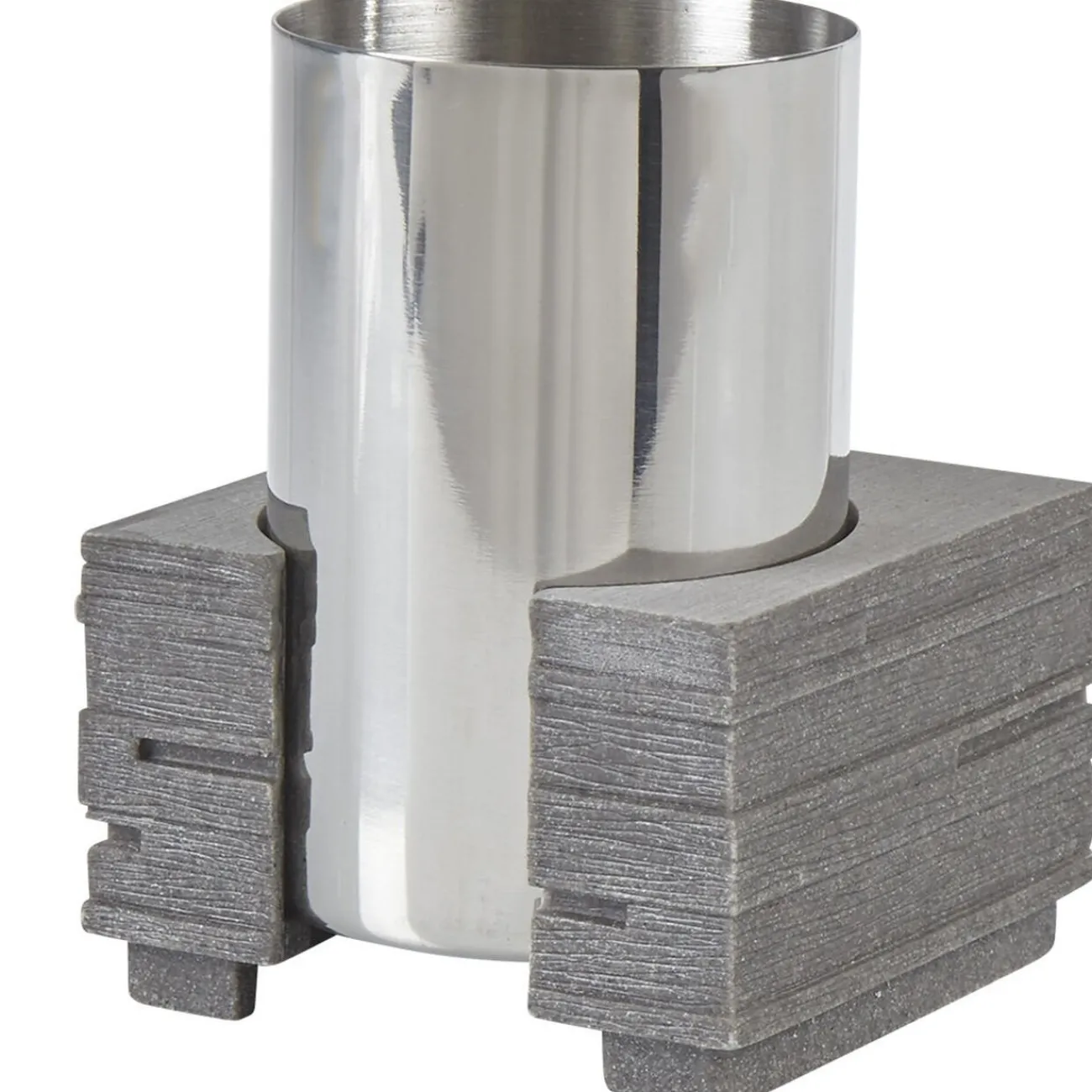 Gobelet pour salle de bain gris imitation pierre, dim. 8,5×8,5xh.10 cm, inox et résine.