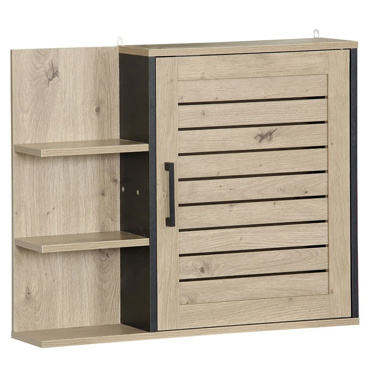 Ce meuble mural en bois est idéal pour ordonner votre salle de bains.