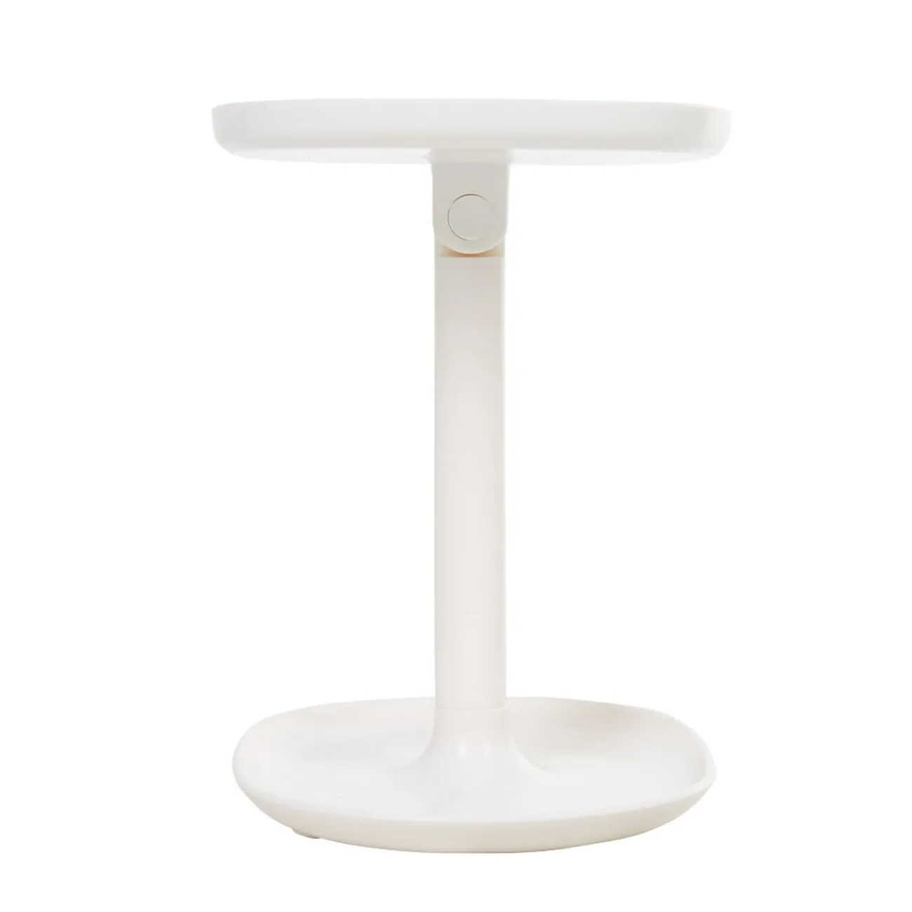 Miroir POP inclinable de couleur blanche sur pieds pouvant faire office de repose bijoux ou accessoires.