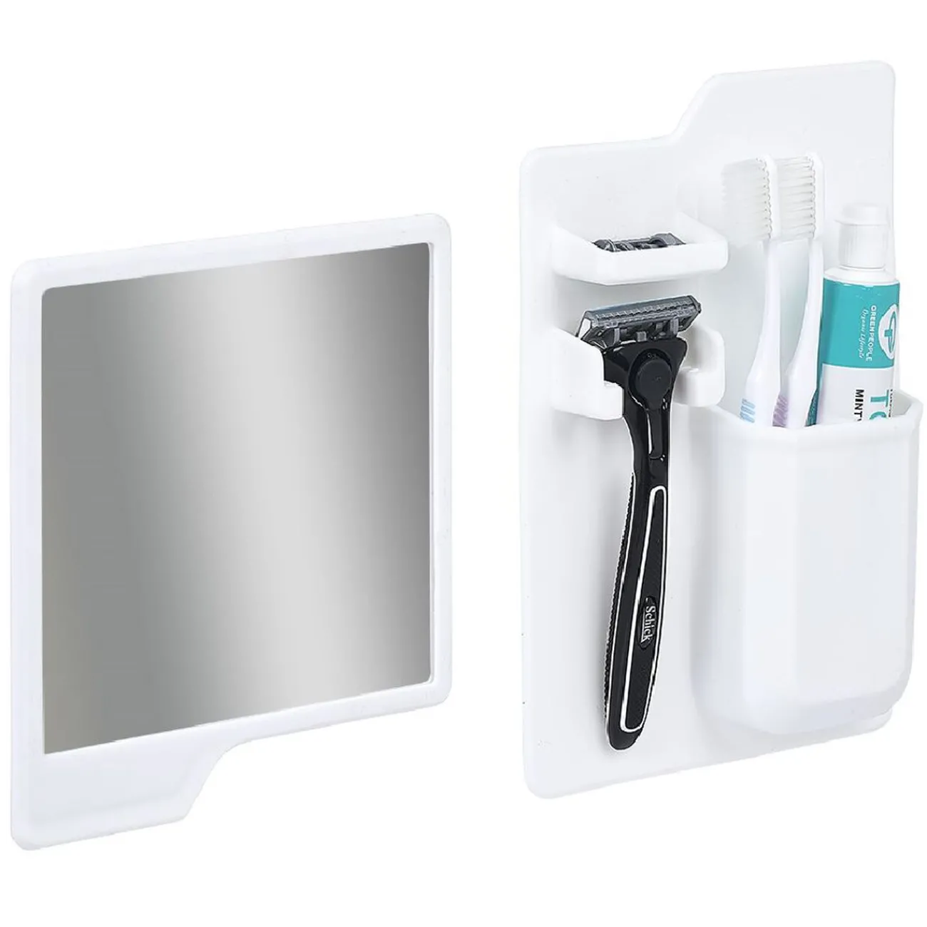 Organiseur pour salle de bain en silicone avec miroir, idéal pour accrocher rasoir, brosse à dent ou dentifrice.