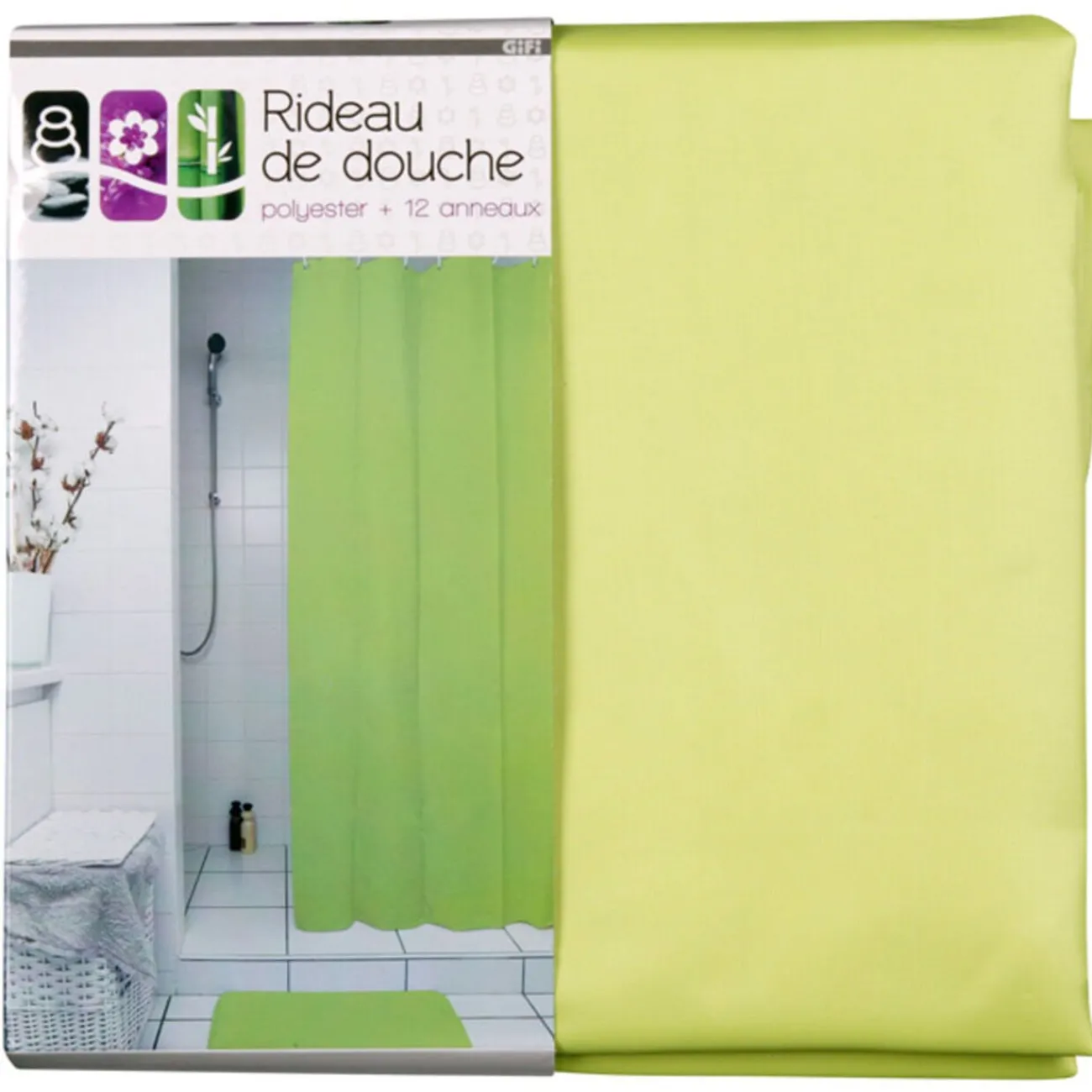 Rideau de douche vert anis, à anneaux, dim. 180×180 cm, polyester.