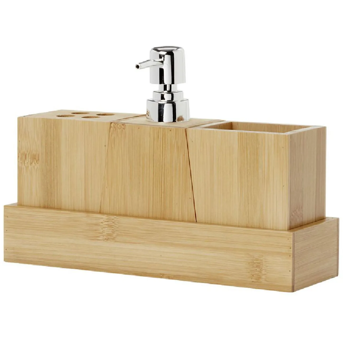 Set d’accessoires de salle de bain en bambou, à placer à côté de votre lavabo.