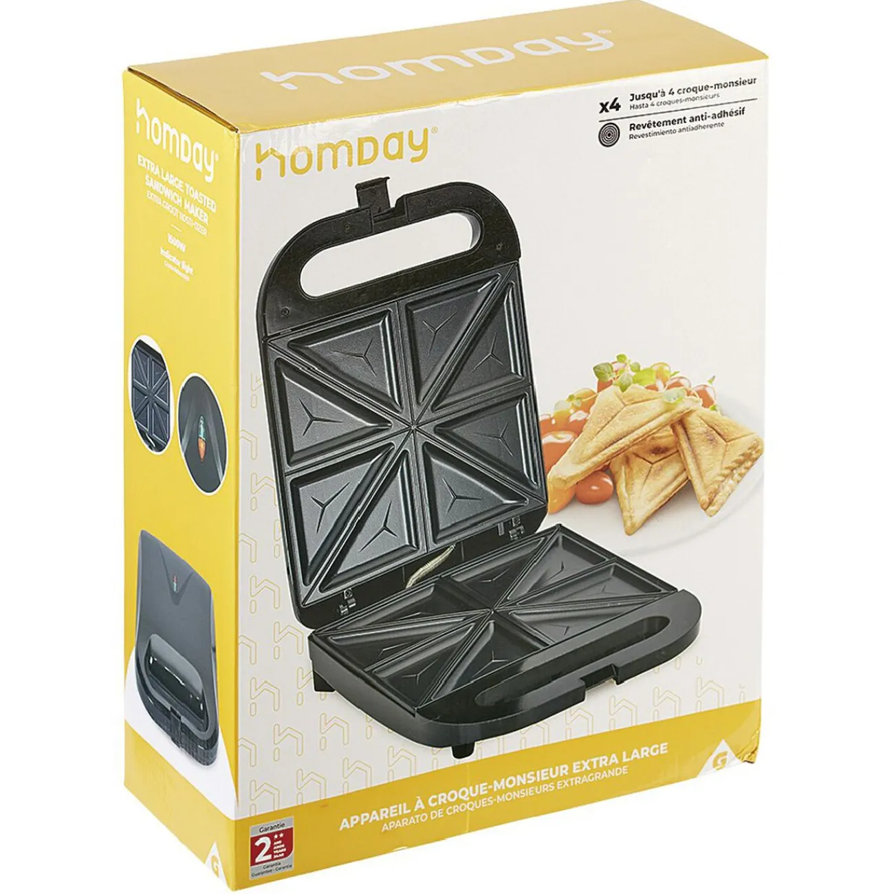 Équipez-vous de ce super appareil à croque-monsieur extra large et faites-vous plaisir en préparant jusqu’à 4 croque-monsieur simultanément.