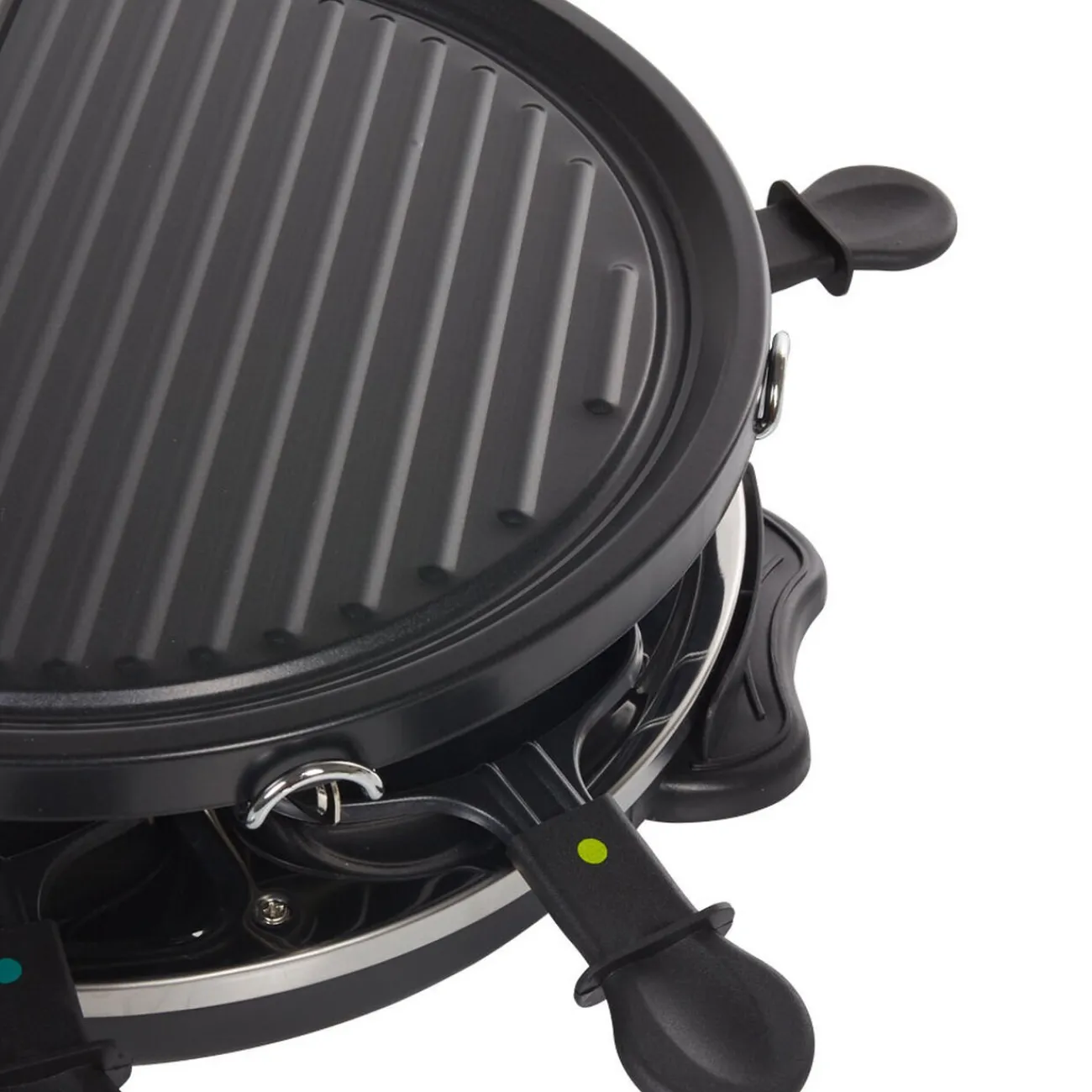 La princesse des machines à raclette arrive pour l’hiver. Invitez vos amis à partager un moment convivial sans vous casser la tête à faire à manger. Sortez cet appareil à raclette pour 8 personnes et régalez-vous ! Avec son côté grill et son côté pierre, agrémentez charcuterie et fromage avec des oignons et des lardons et des aubergines grillées et des piments et des oeufs au plat sur le côté pierre. Avec sa puissance de 1200 w, elle se nettoie facilement grâce à ses 8 poêlons au revêtement antiadhésif et compatible au lave-vaisselle ainsi que ses 2 plaques amovibles antiadhésives.