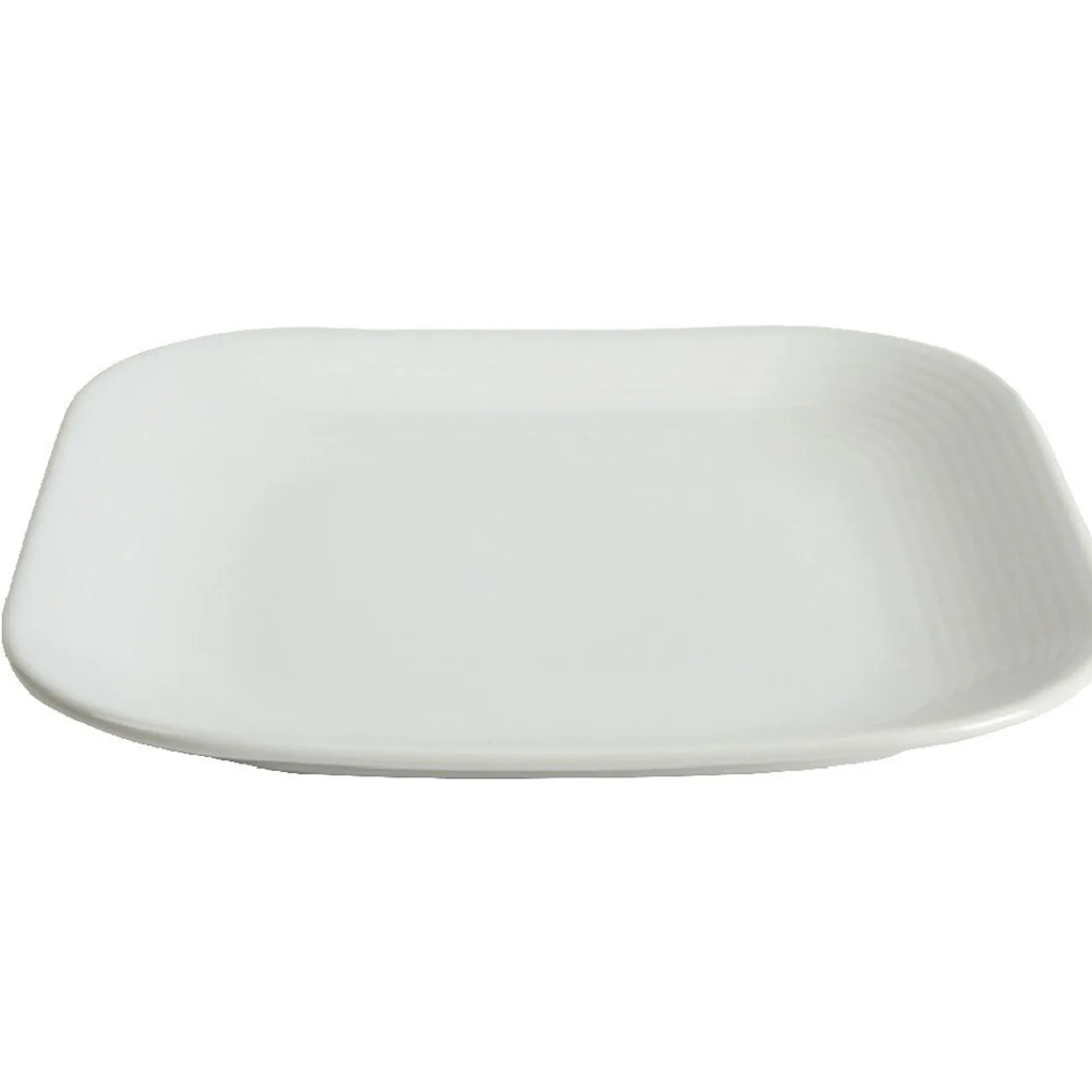 Assiette à dessert carré en grès, de couleur blanche.