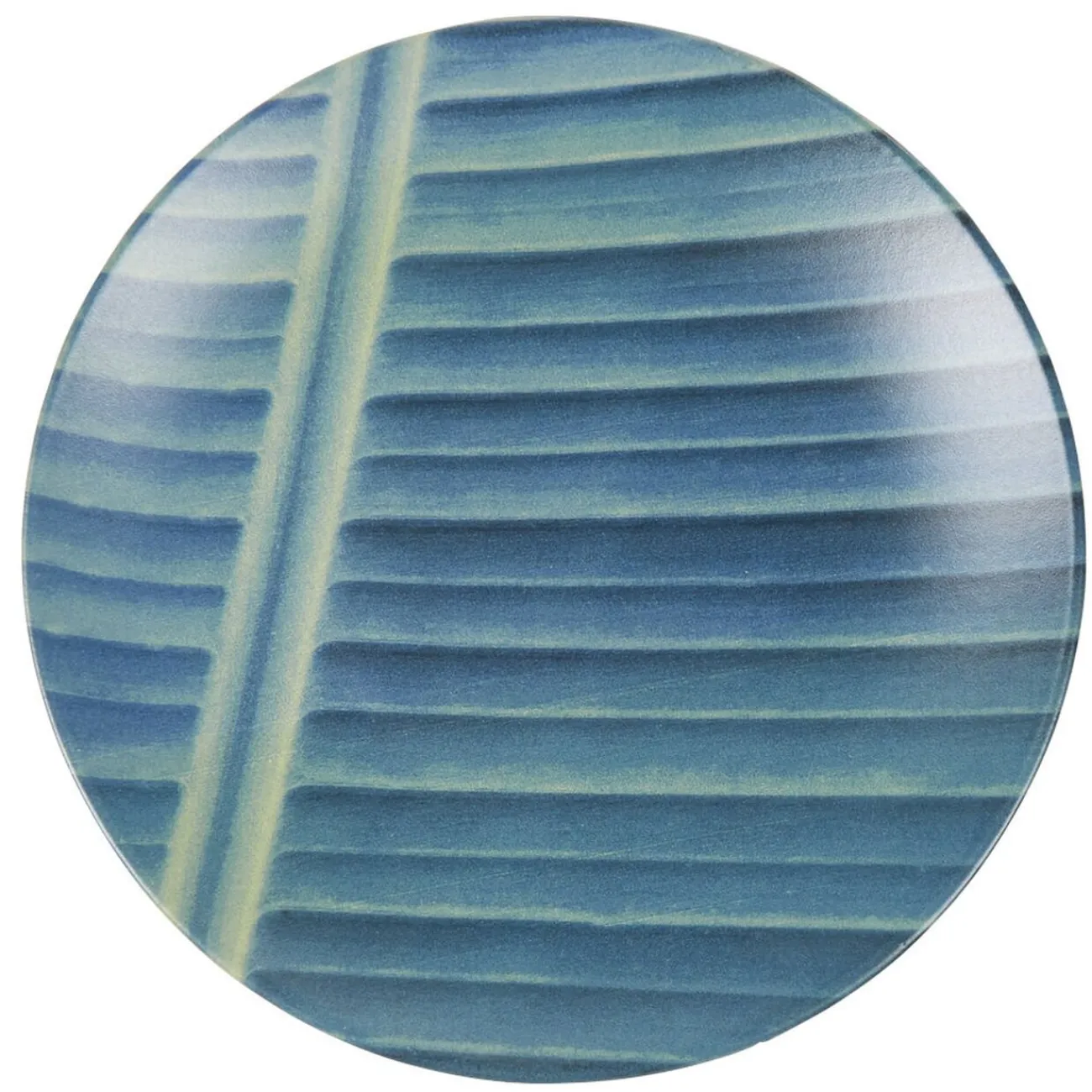 Superbe assiette à dessert en faïence à motif feuille avec nervures.