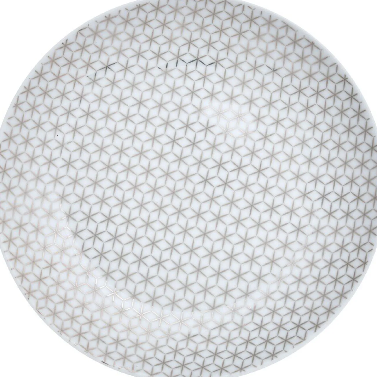 Assiette à dessert design graphique blanc et gris de 19 cm de diamètre.
