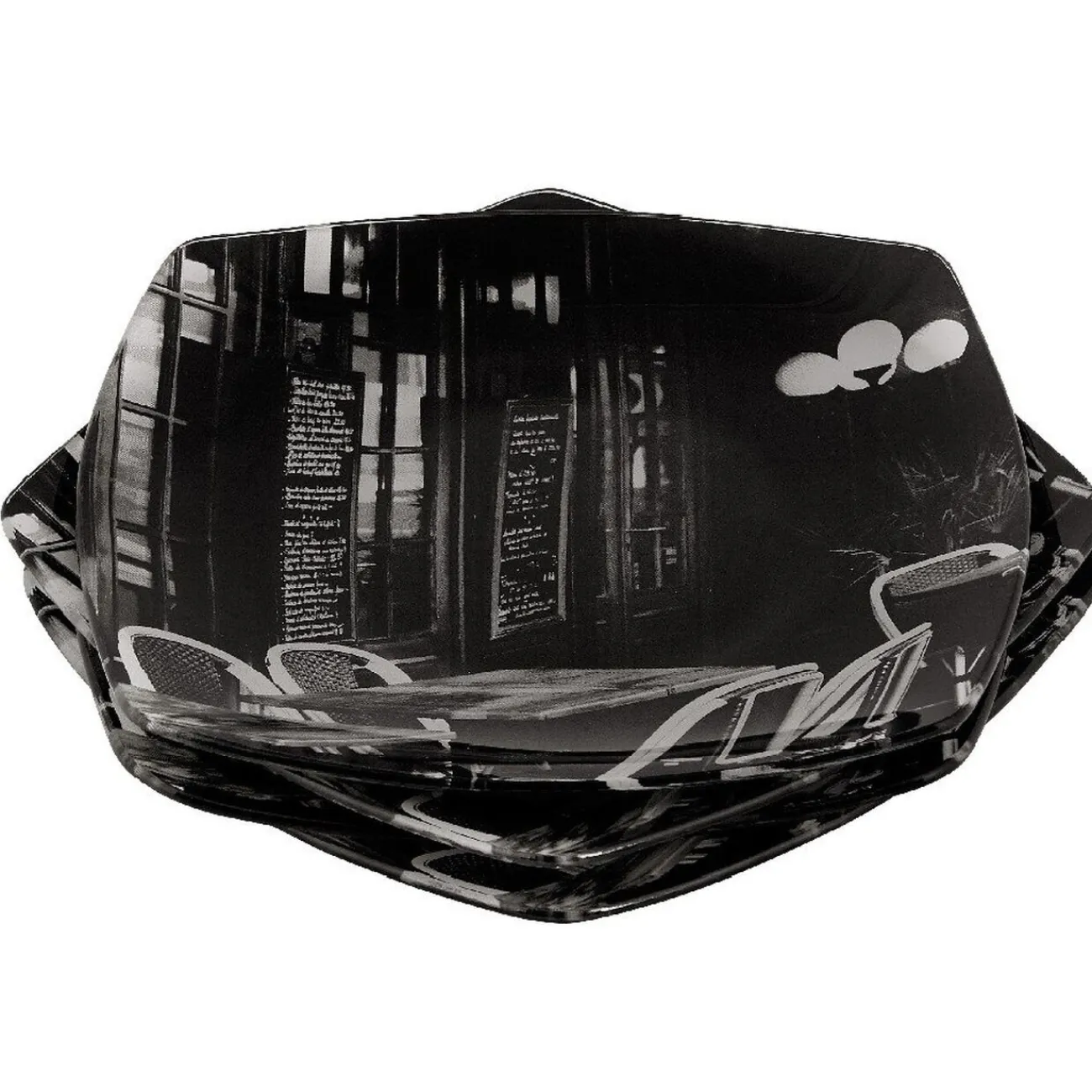 Pour un dessert des plus convivial et une table à la touche industrielle, faites plaisir à vos amis avec ces 4 assiettes à dessert au motif terrasse de brasserie et servez-y une bon café gourmand.