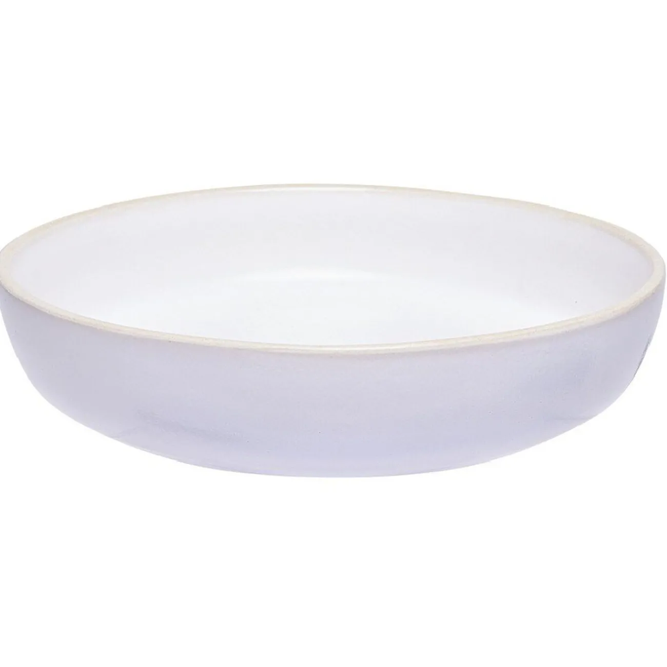 Assiette creuse en faïence blanc avec liseré crème. Idéale pour apporter de la chaleur à votre décoration de table.