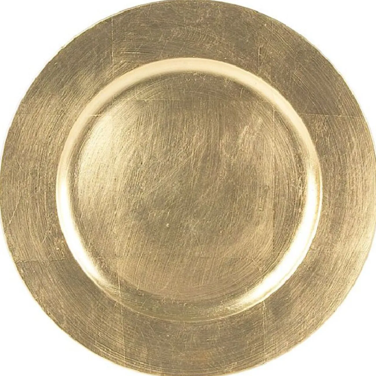 Assiette plate ronde, en plastique, de couleur dorée et de 33×2 cm de dimension.