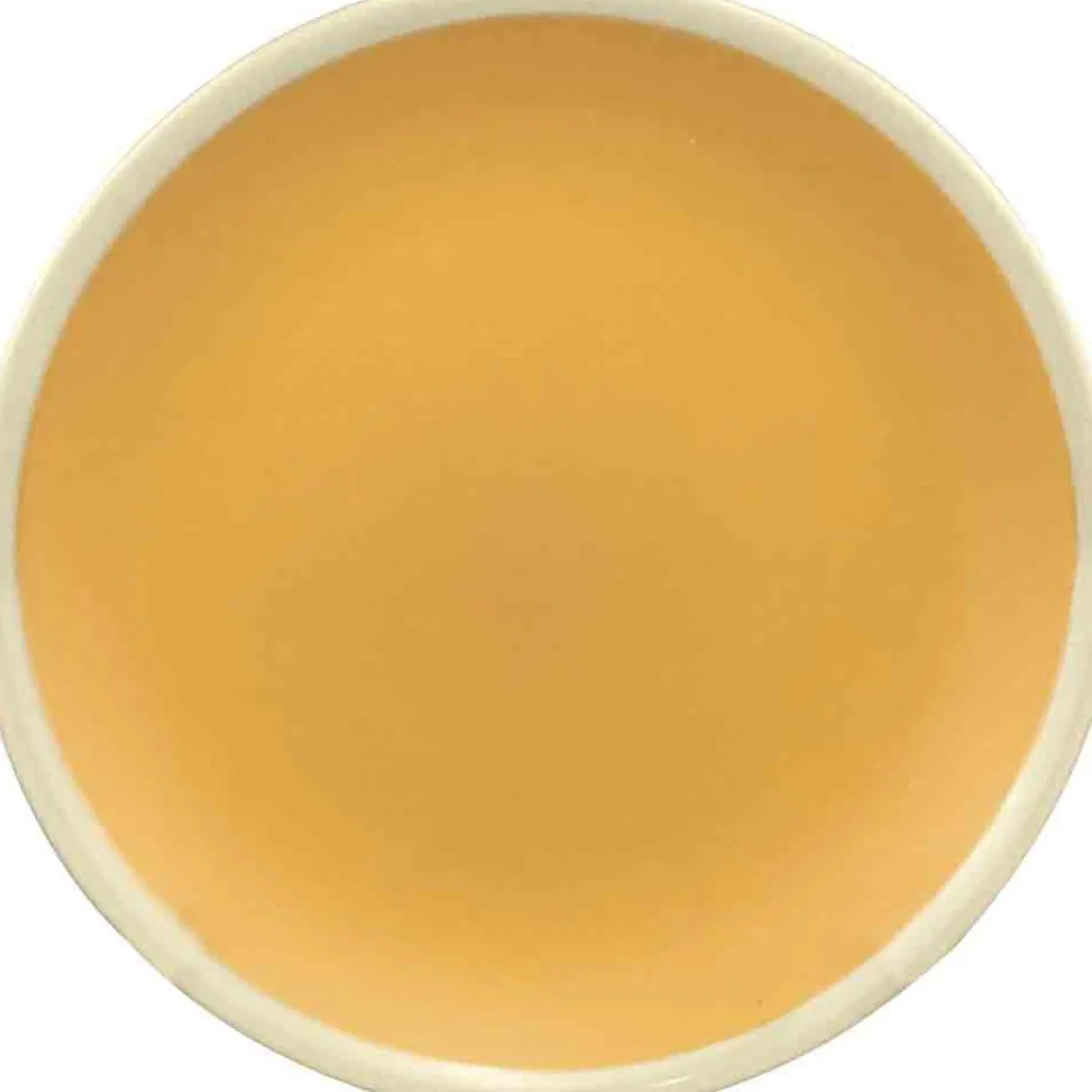 Épicez votre table avec une assiette à dessert aux contours blancs. Sa couleur ocre rappelant la terre sèche et la safran aura un effet ensoleillé pour des desserts colorés et remplis de saveurs comme la pêche melba.