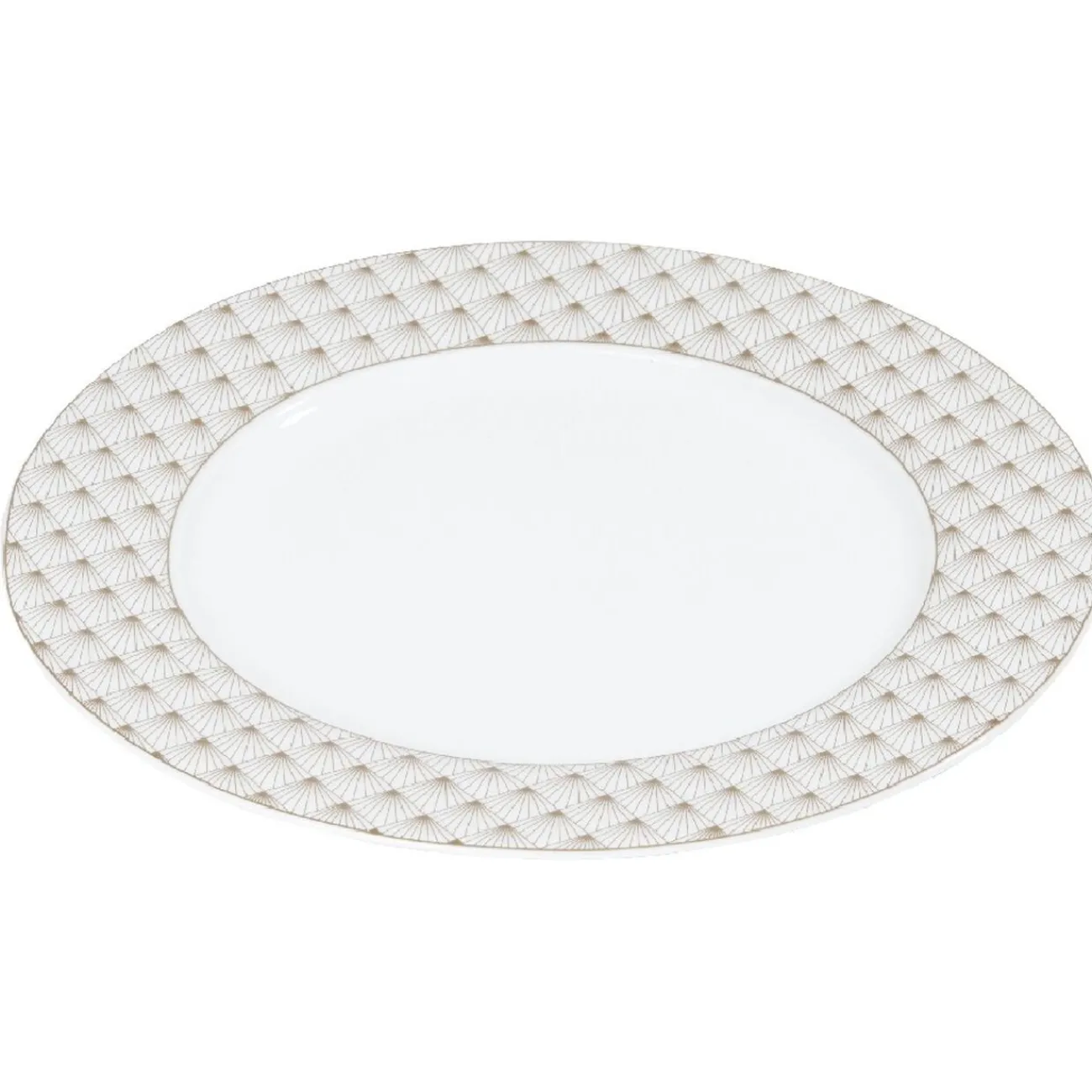 Les plats de fêtes seront à l’honneur grâce à cette assiette plate blanche bordée de rayons dorés.