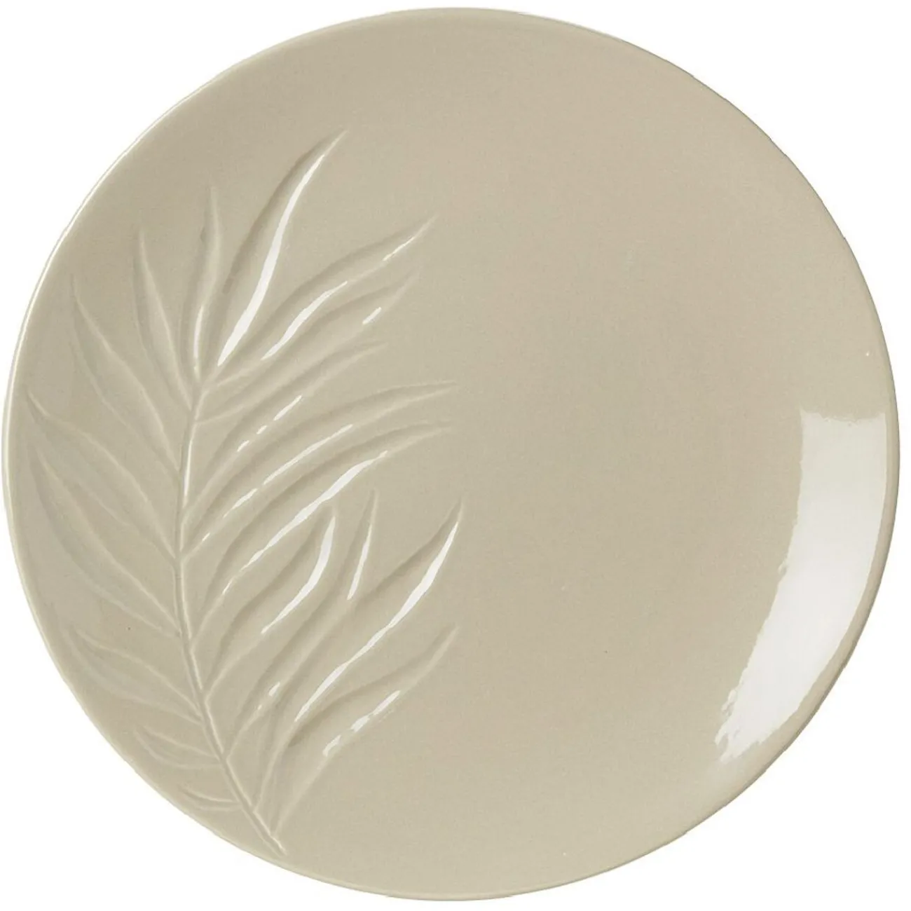 Agrémentez votre table de cette jolie assiette embossée d’une feuille légèrement visible sur le côté ! De couleur beige ou verte, disponibilité selon stock en magasin.