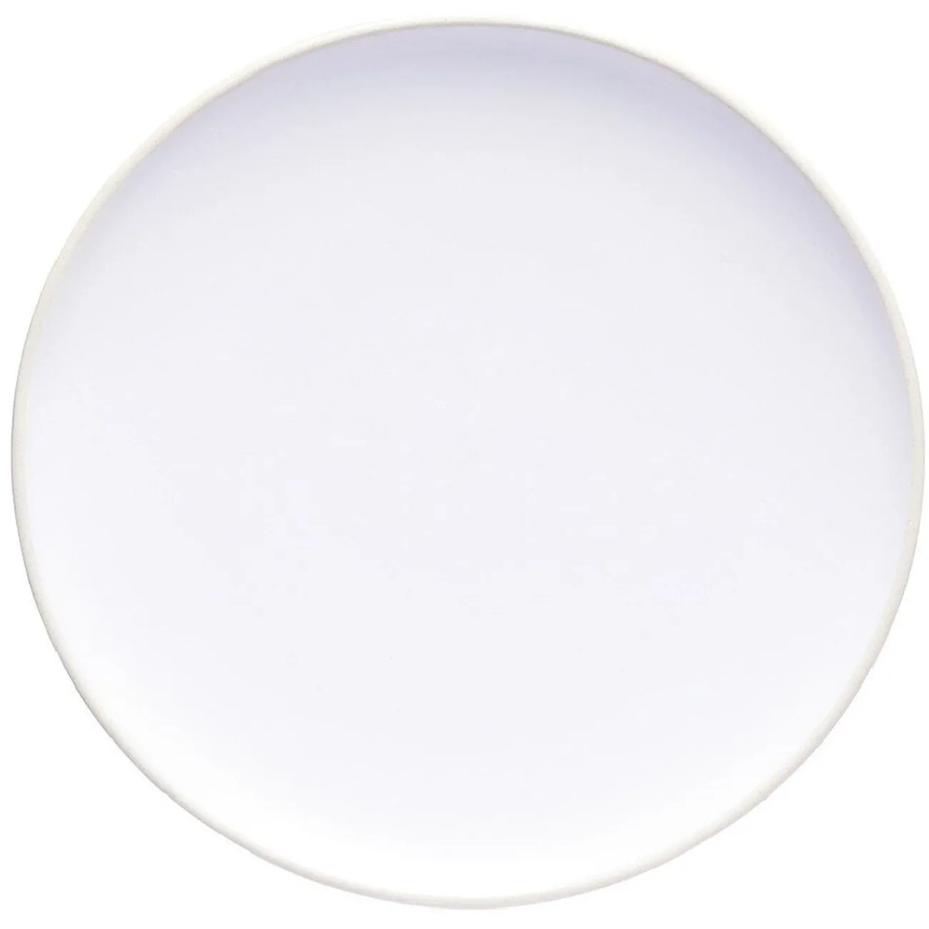 Assiette plate en faïence blanc avec liseré crème. Idéale pour apporter de la chaleur à votre décoration de table.