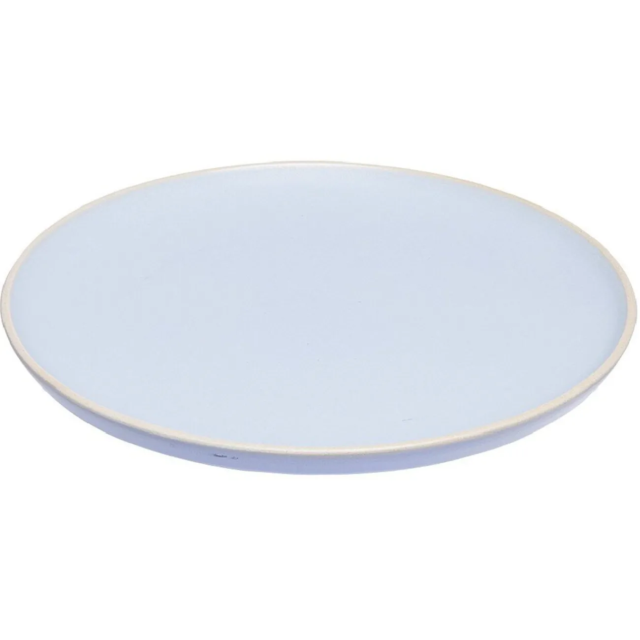 Assiette plate en faïence bleu turquoise avec liseré crème. Idéale pour apporter de la chaleur à votre décoration de table.