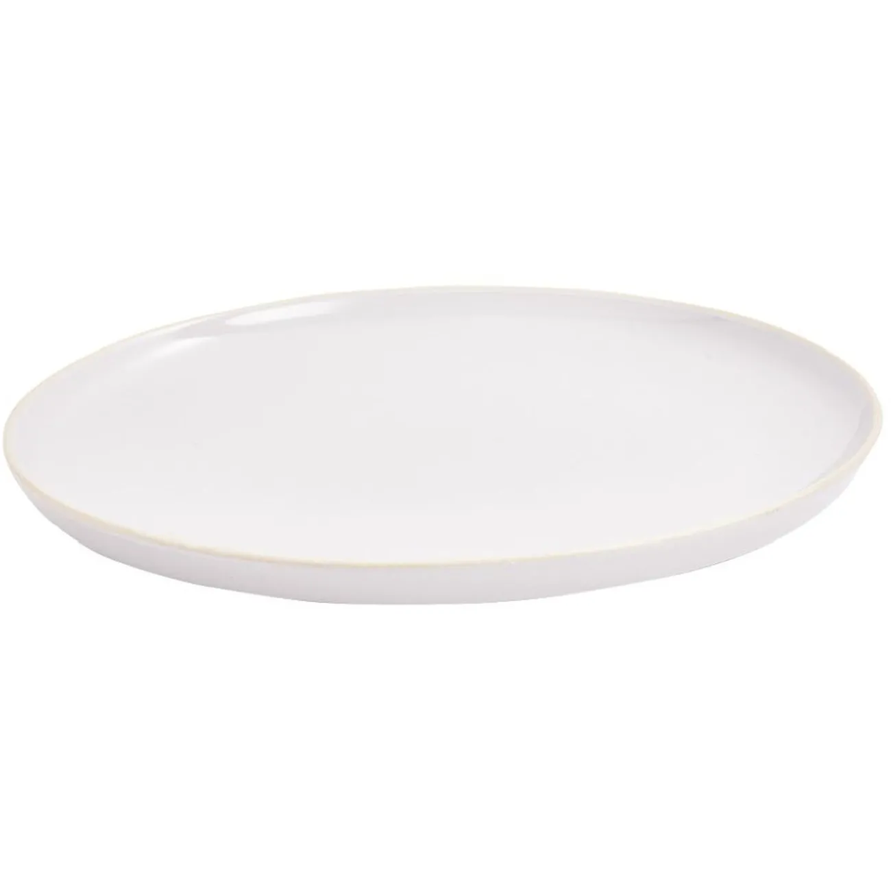 Assiette plate en faïence de couleur grise avec liseré crème pour un effet à la fois chic et naturel.