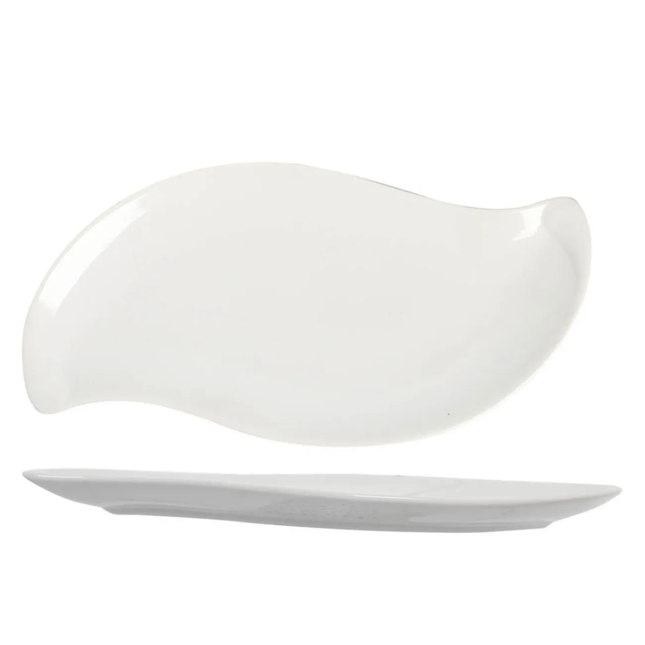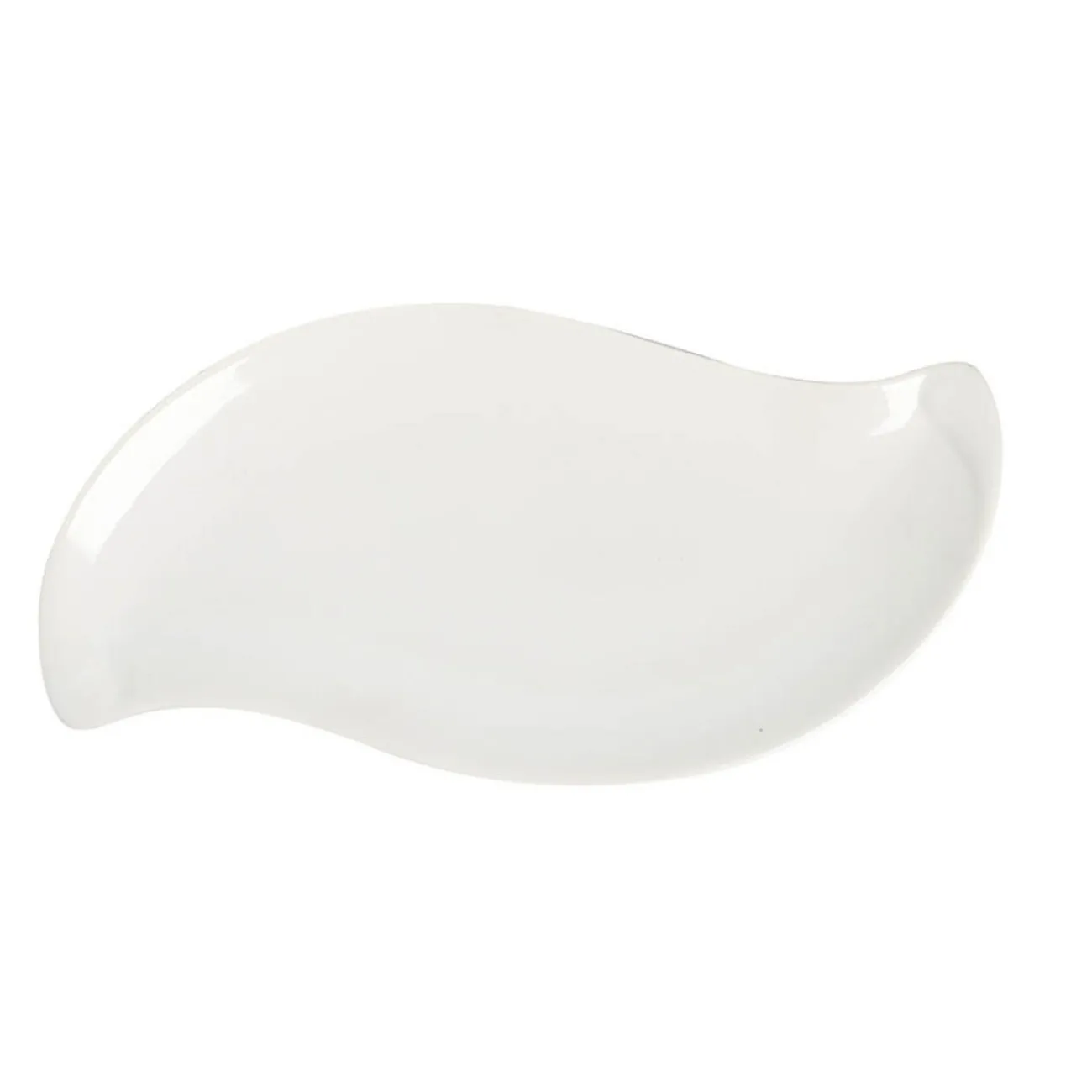Servez élégamment de bons petits plats dans cette assiette plate blanche en forme de feuille.