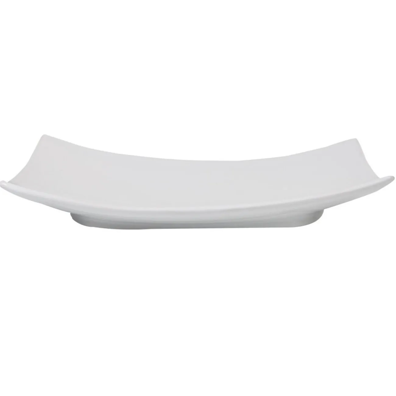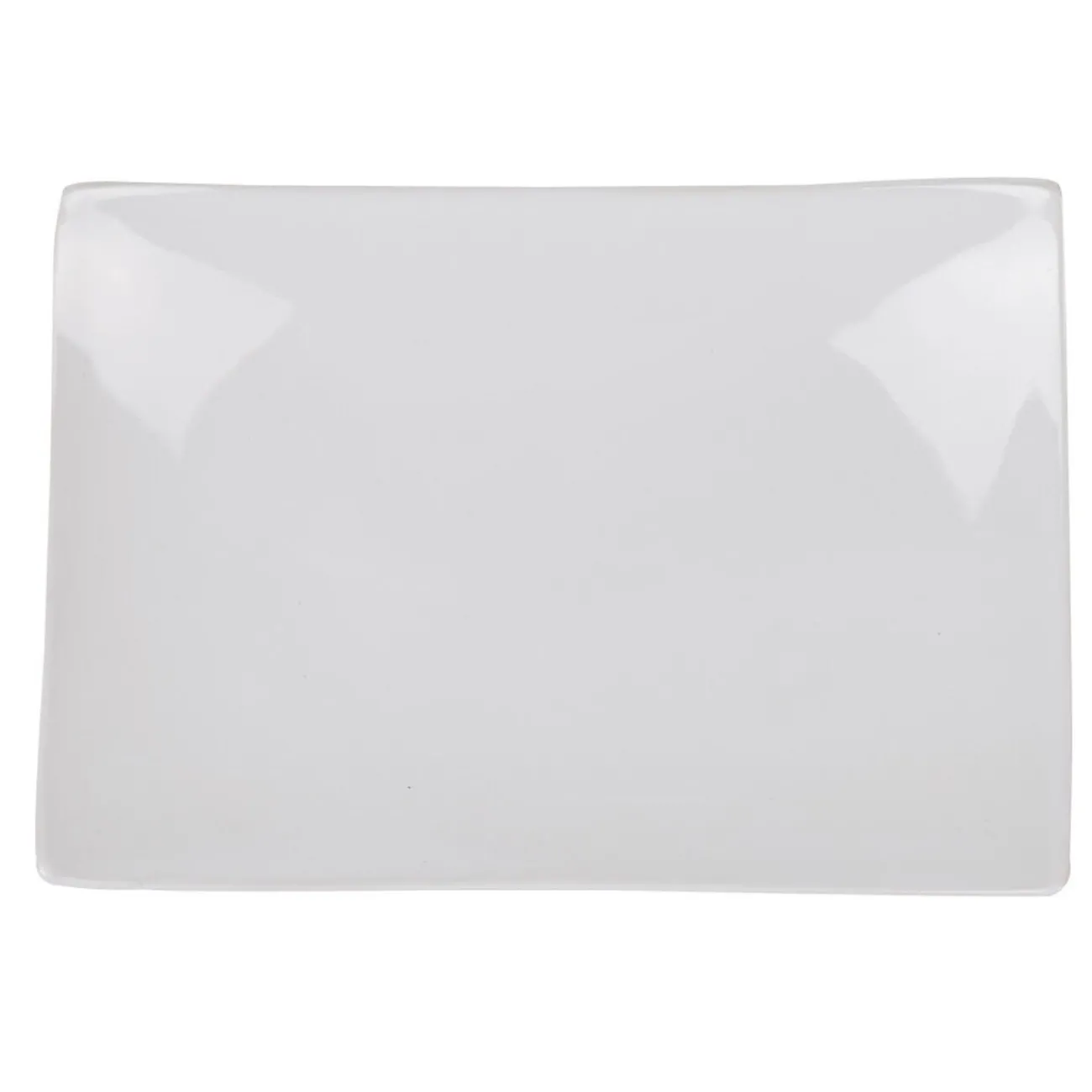 Assiette plate blanche rectangulaire légèrement incurvée, dim. 29x20xh.2,4 cm, faïence.