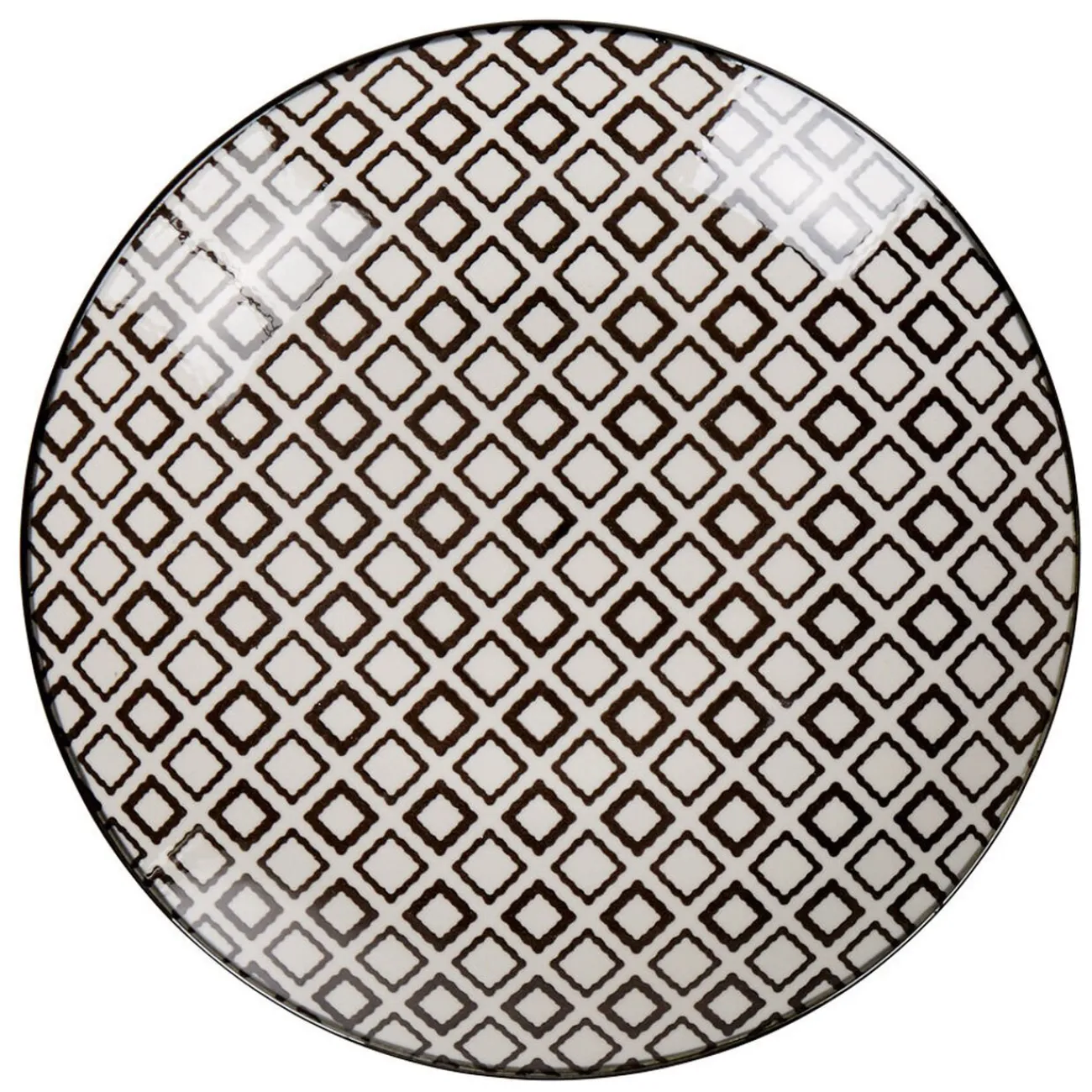 Dressez une jolie table tendance avec cette assiette blanche agrémentée d’un motif losange noir (modèle Etna).