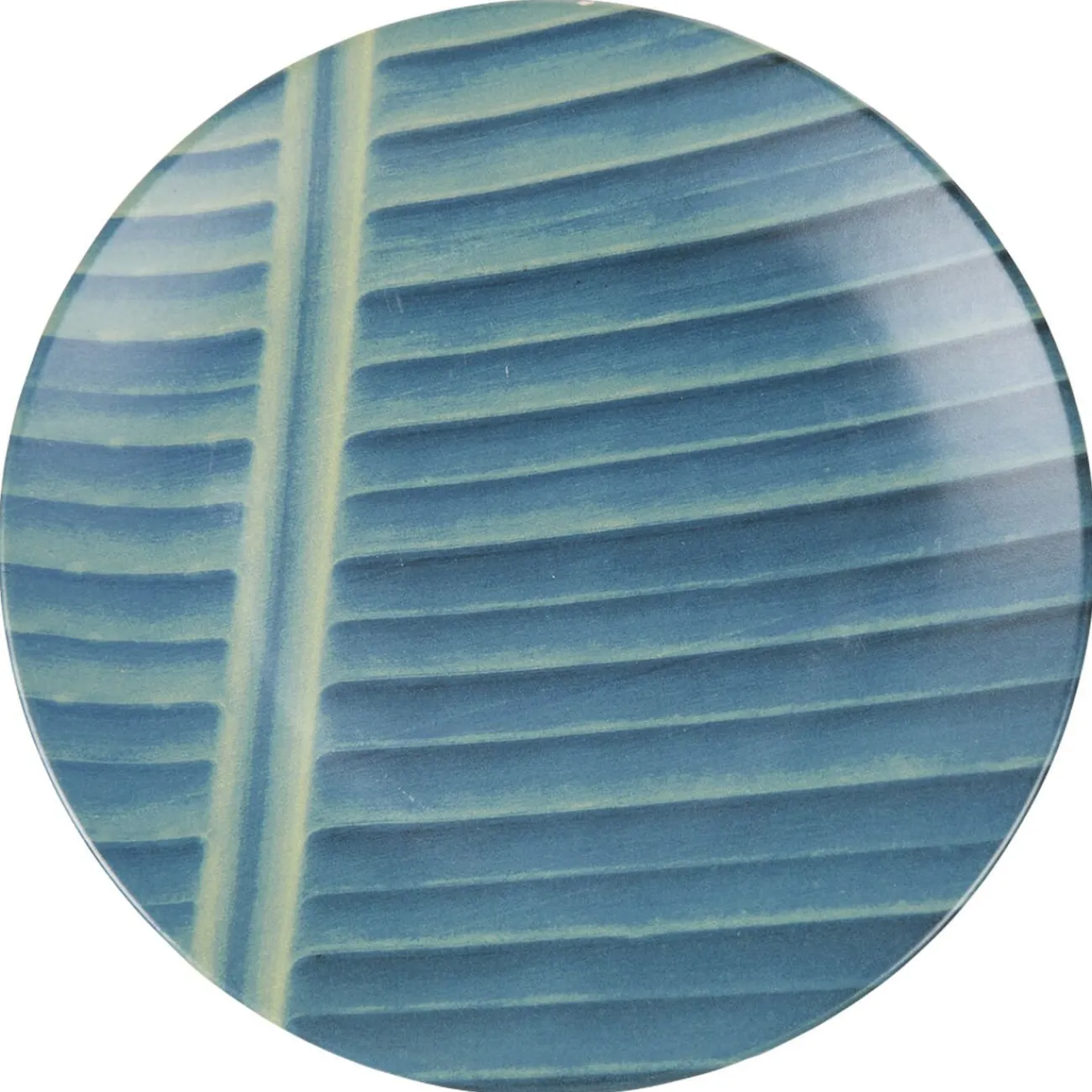 Superbe assiette plate en faïence à motif feuille avec nervures.