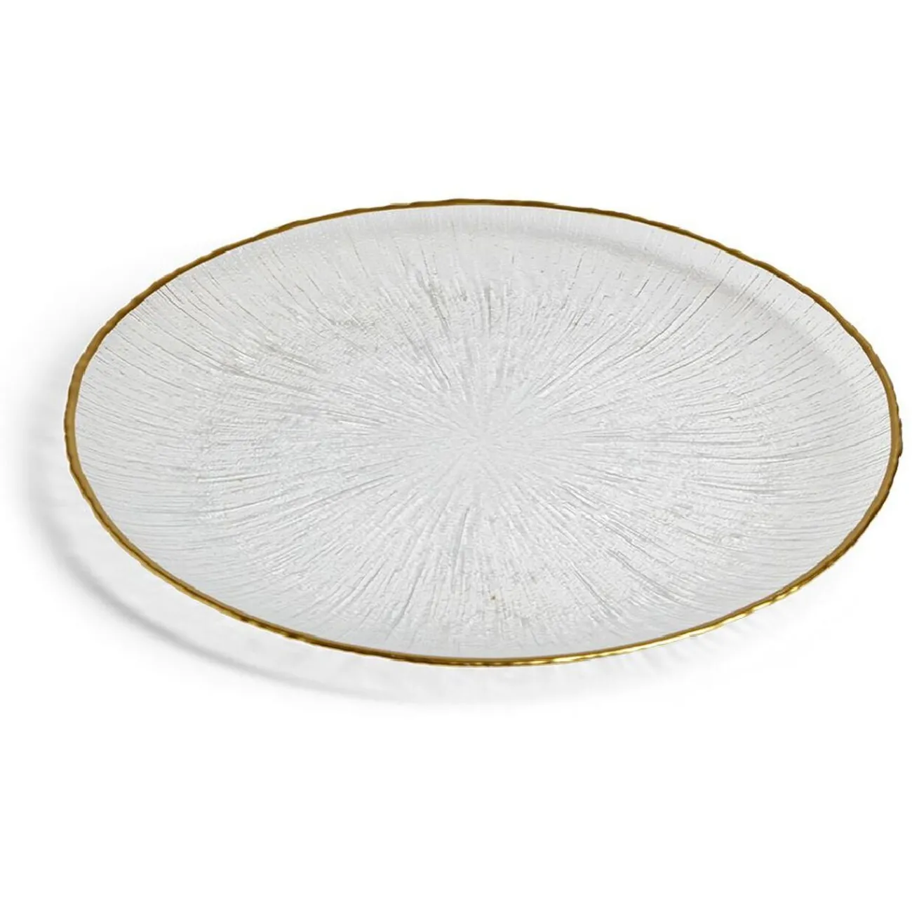 Vaisselle chic par excellence, cette assiette en verre transparent et bordure dorée est idéale pour parfaire votre table de Noël.