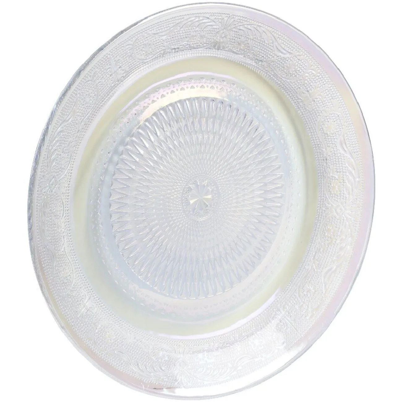 Assiette plate de forme ronde avec décor ciselé design irisé.