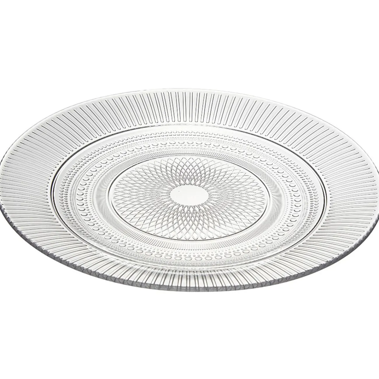 Jolie assiette plate de 25 cm de diamètre en verre transparent Louison de chez Luminarc. Son design raffiné et élégant apportera une belle touche de charme à vos repas.