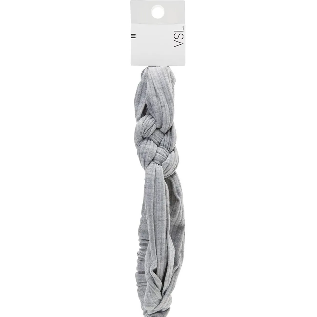 Un joli bandeau en polyester gris avec dessus tressé pour maintenir vos cheveux avec style.