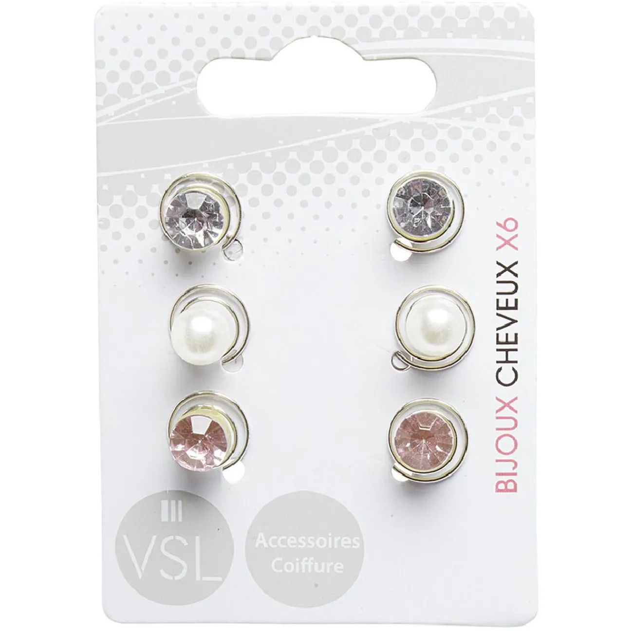 Ces barrettes spirales permettent d’accrocher les cheveux les plus fins et d’adapte à la tenue avec sa déclinaison en perles argentées blanches et roses