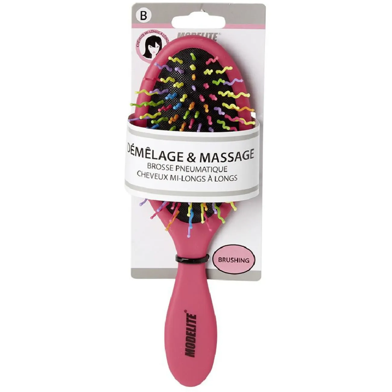 Gifi Beauté^Brosse pneumatique ovale picots perlés pvc multicolore fuchsia