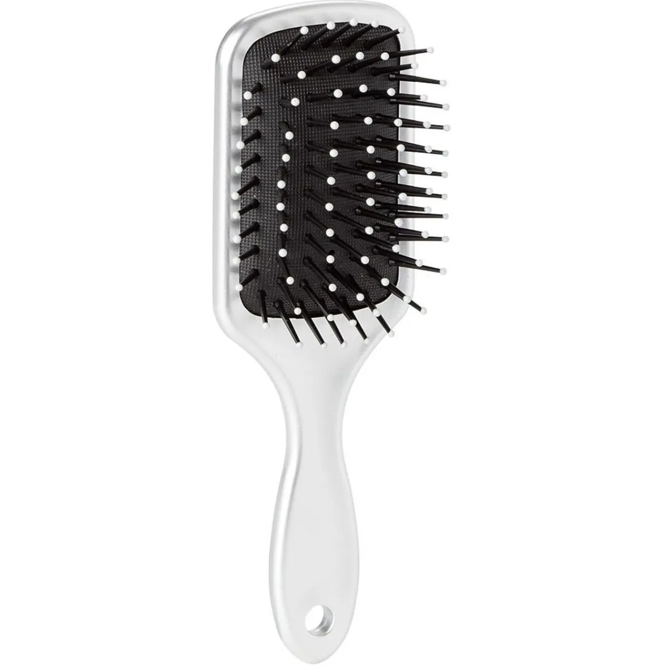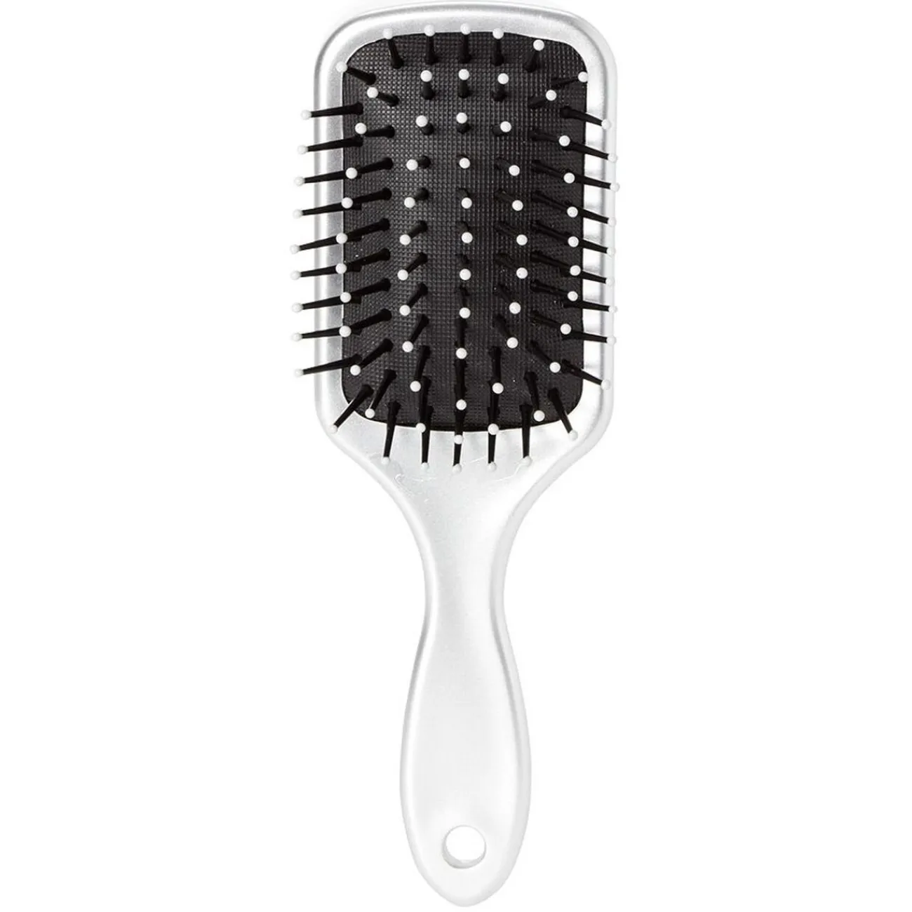 Brosse pneumatique rectangulaire avec picots en pvc perlés pour un démêlage et un coiffage des cheveux tout en douceur.