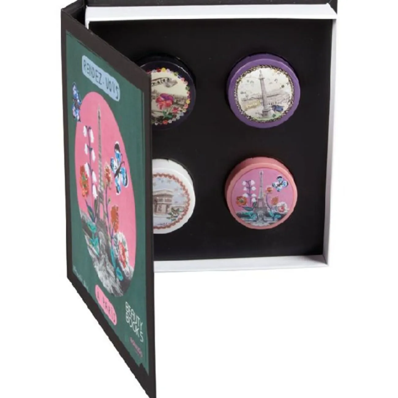Coffert maquillage Bourjois « Collection vintage » comprenant 3 ombres à paupières, 1 blush et 1 pinceau applicateur.