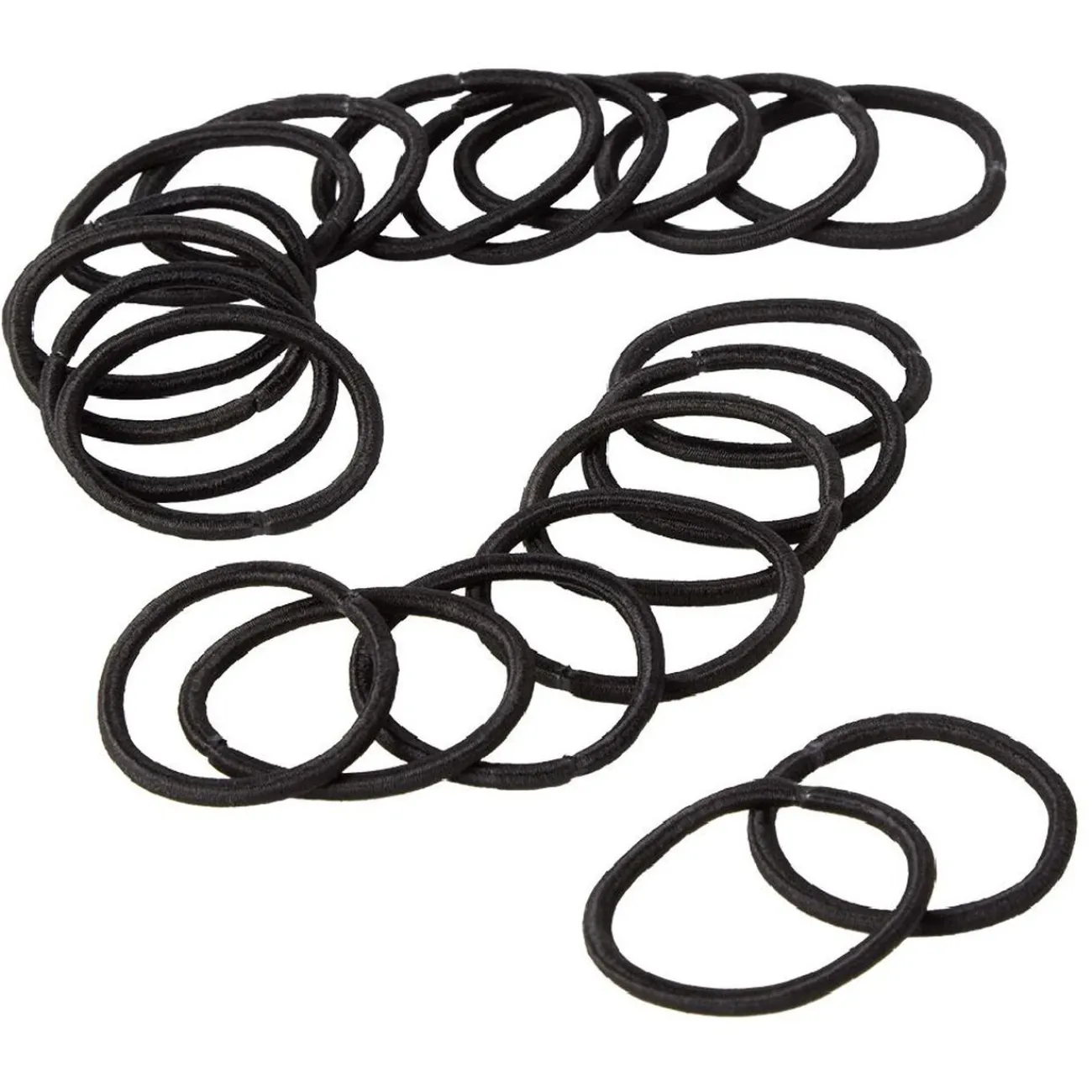 Lot de 20 élastiques, sans métal, noirs décorés de fil métallique brillant.