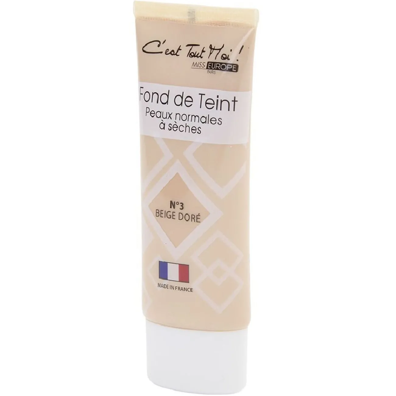 Harmonisez la couleur de votre peau avec ce fond de teint N°03 beige doré pour peaux normales à sèches.