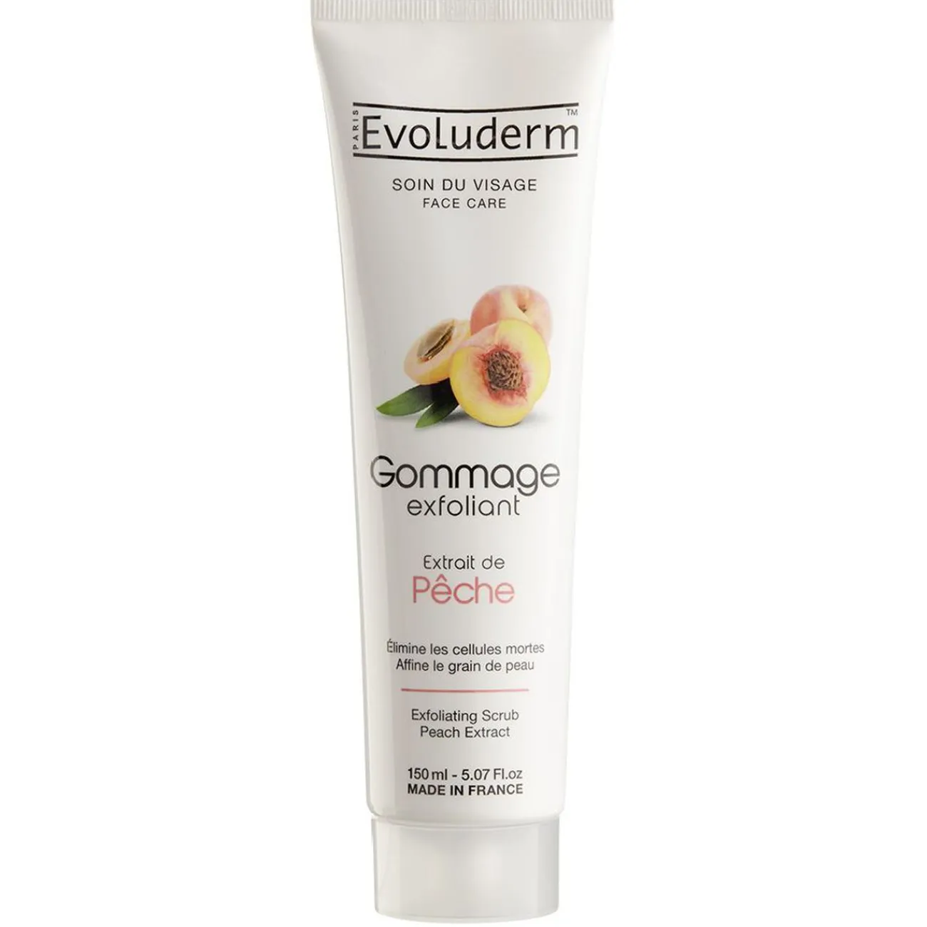 Gommage exfoliant Evoluderm au beurre de karité pour éliminer les cellules mortes et affiner le grain de peau.