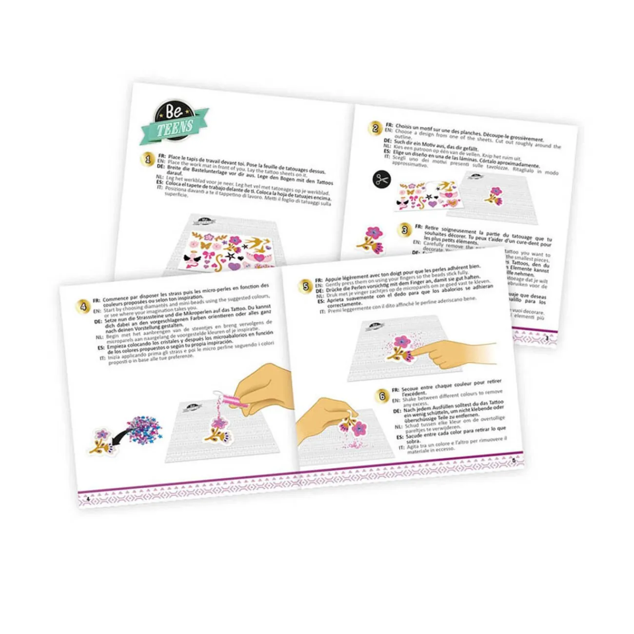 Le kit permet de réaliser des tatouages éphémères en micro perles et strass.