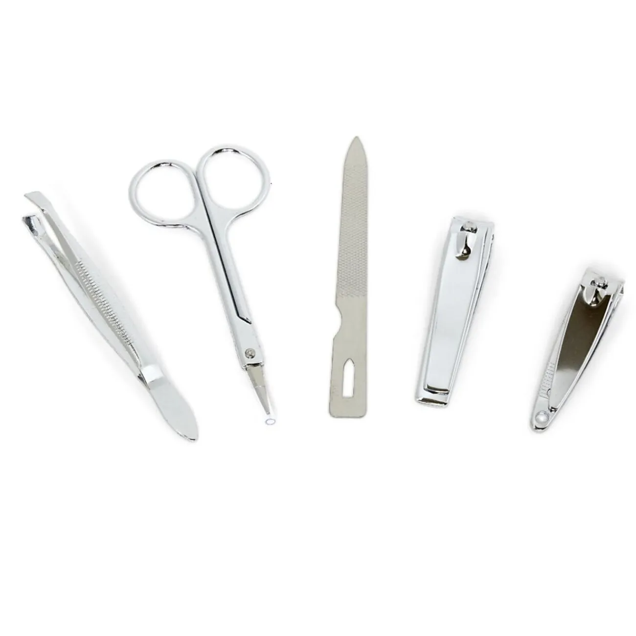 Contient : 1 pince à épiler, 1 paire de ciseaux, 1 lime et 2 coupe-ongles.