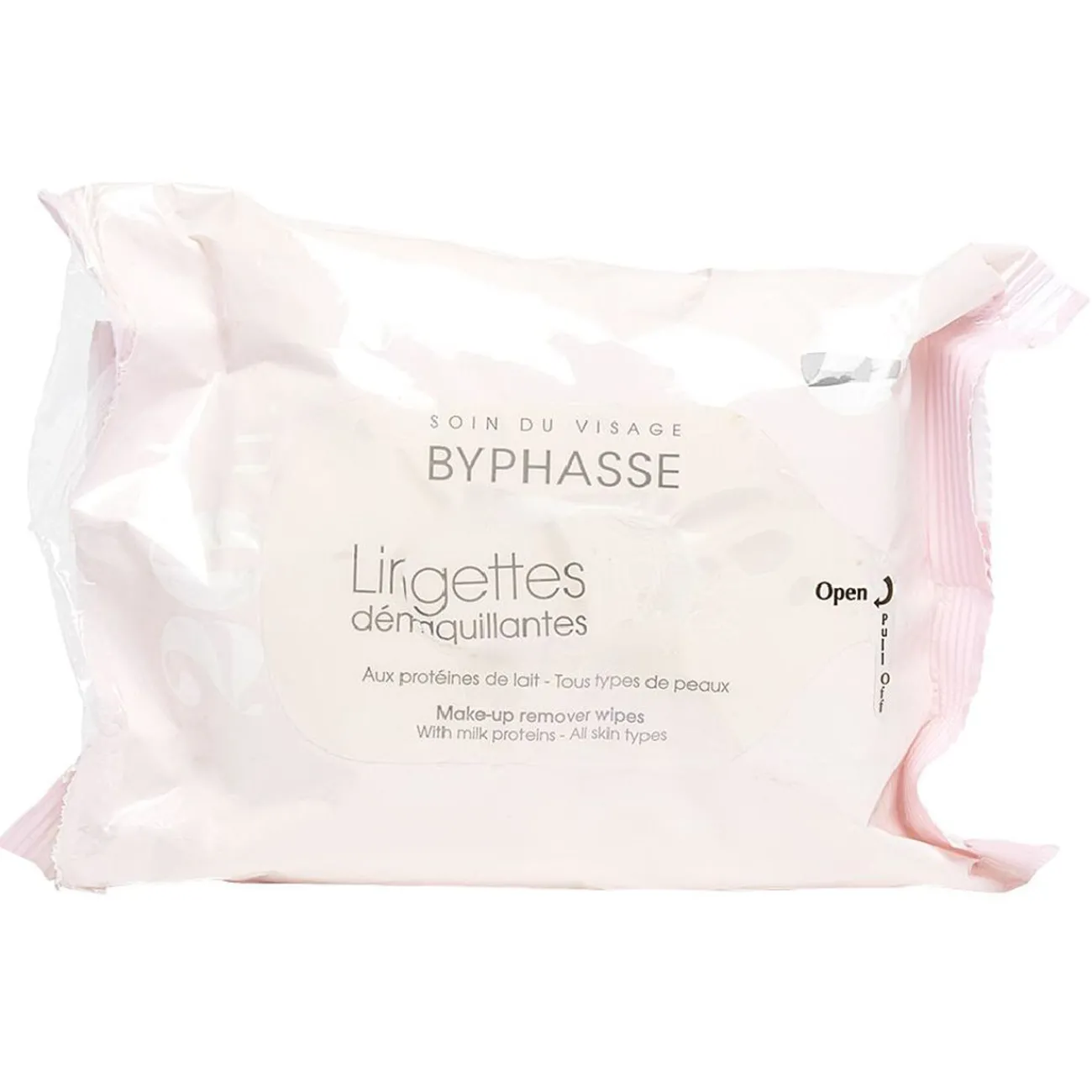 20 Lingettes démaquillantes Byphasse, aux protéines de lait, pour tous types de peaux.