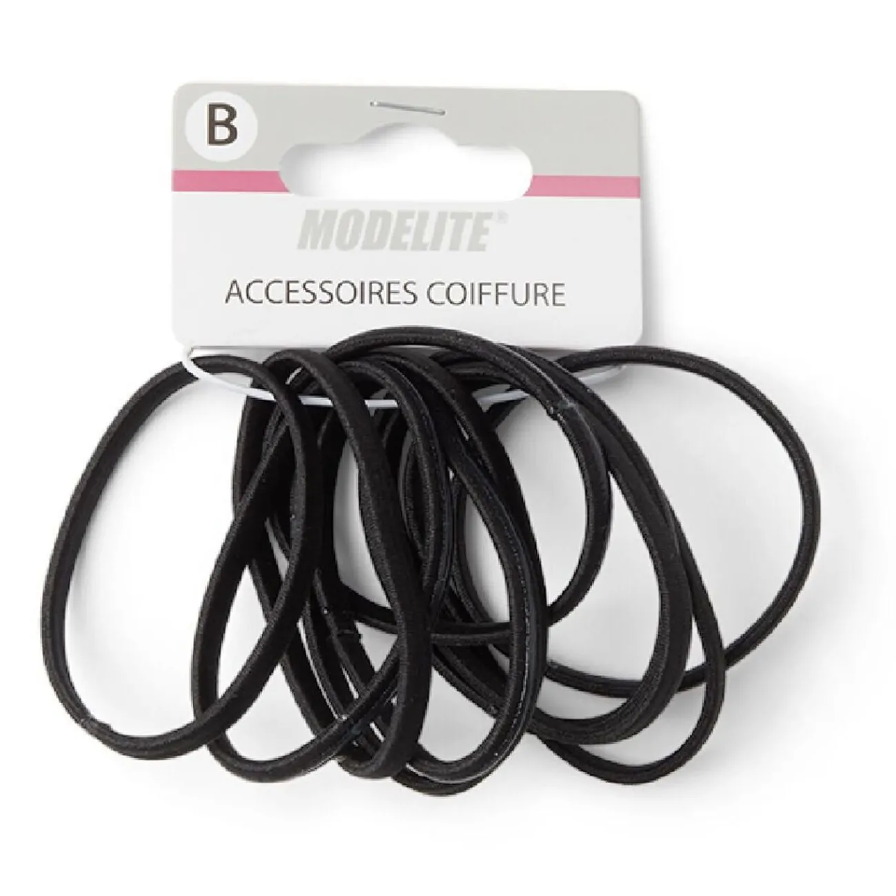 Lot de 10 élastiques à cheveux en polyester noir, assurant un maintien optimal.