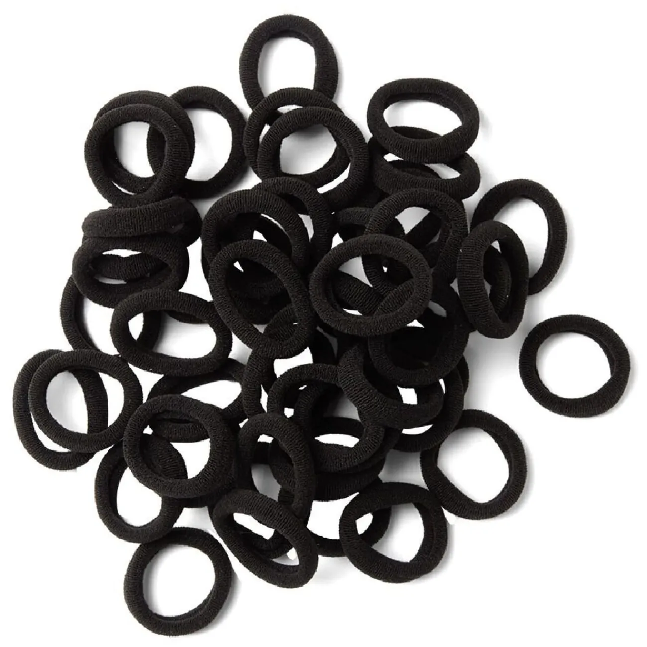 Lot de 50 élastiques à cheveux en polyester noir, parfaits pour tous types de cheveux.