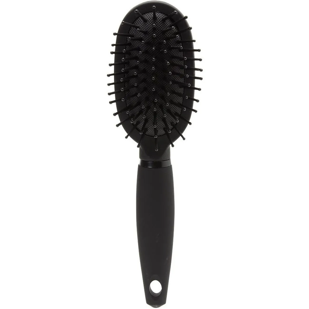 Brosse pneumatique en plastique noir avec picots perlés au format mini pour l’avoir toujours à portée de main dans son sac.