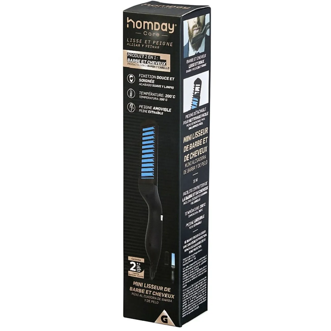 Son peigne quant à lui, vous permettra de coiffer facilement cheveux et barbes, et sera simple à nettoyer grâce à sa fonction détachable.