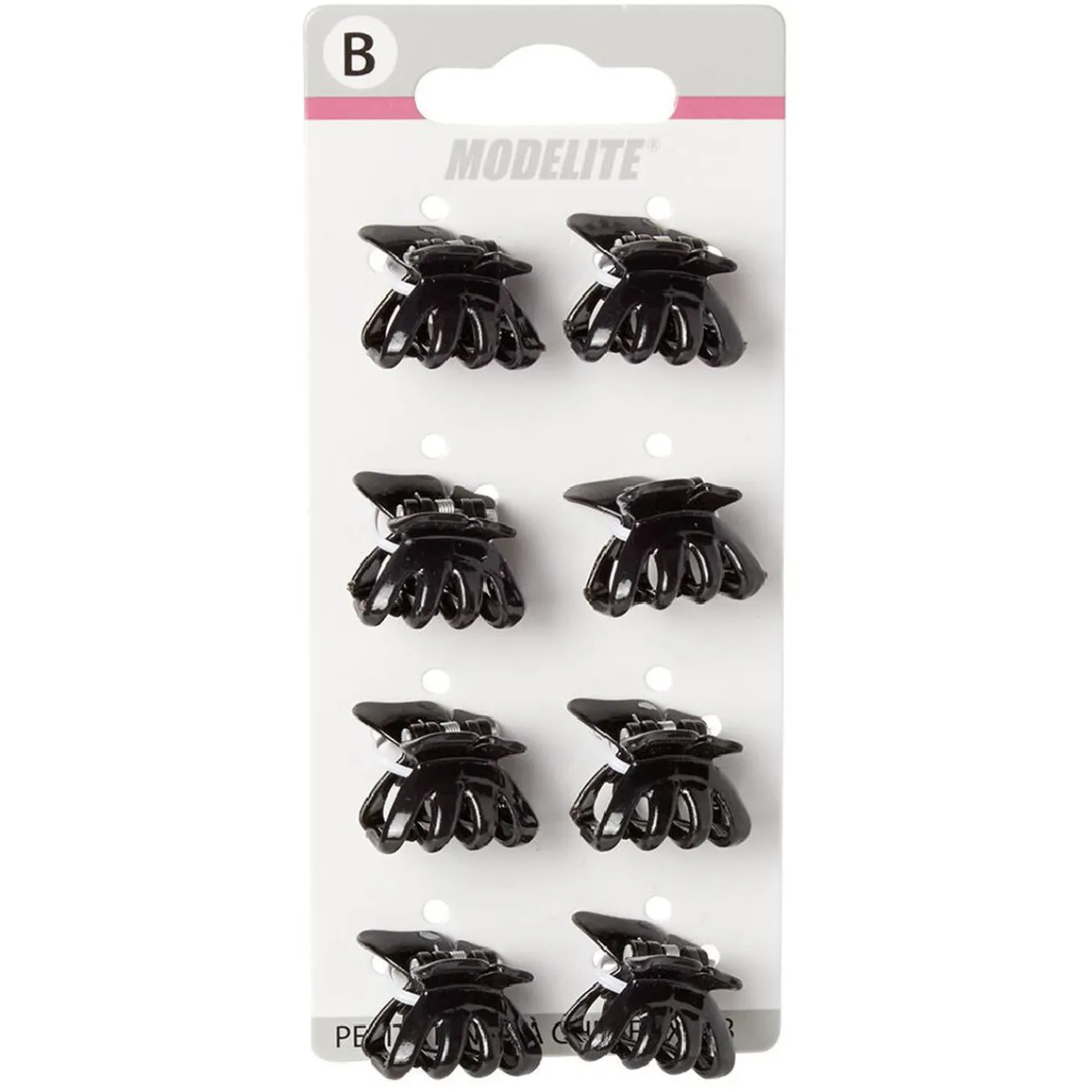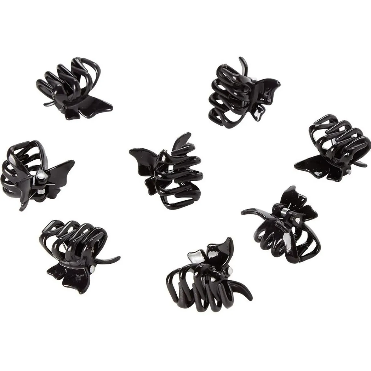 Lot de 8 minis pinces en forme de papillon en plastique uni noir brillant. Longueur : 2 cm