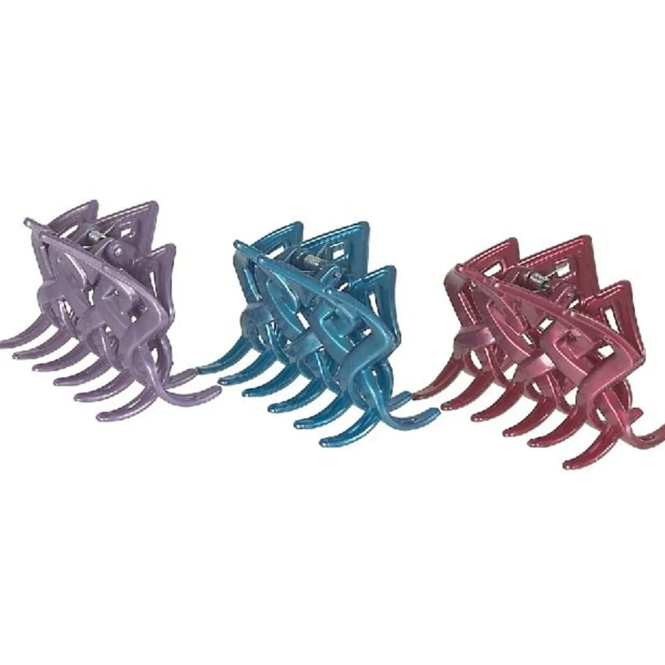3 pinces à cheveux de dim. 7,5x4x5,5 cm, plastique.