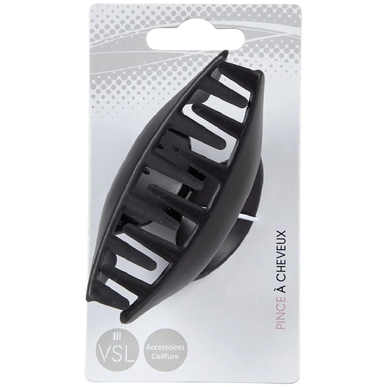 Pince à cheveux type crabe en plastique uni noir brillant.